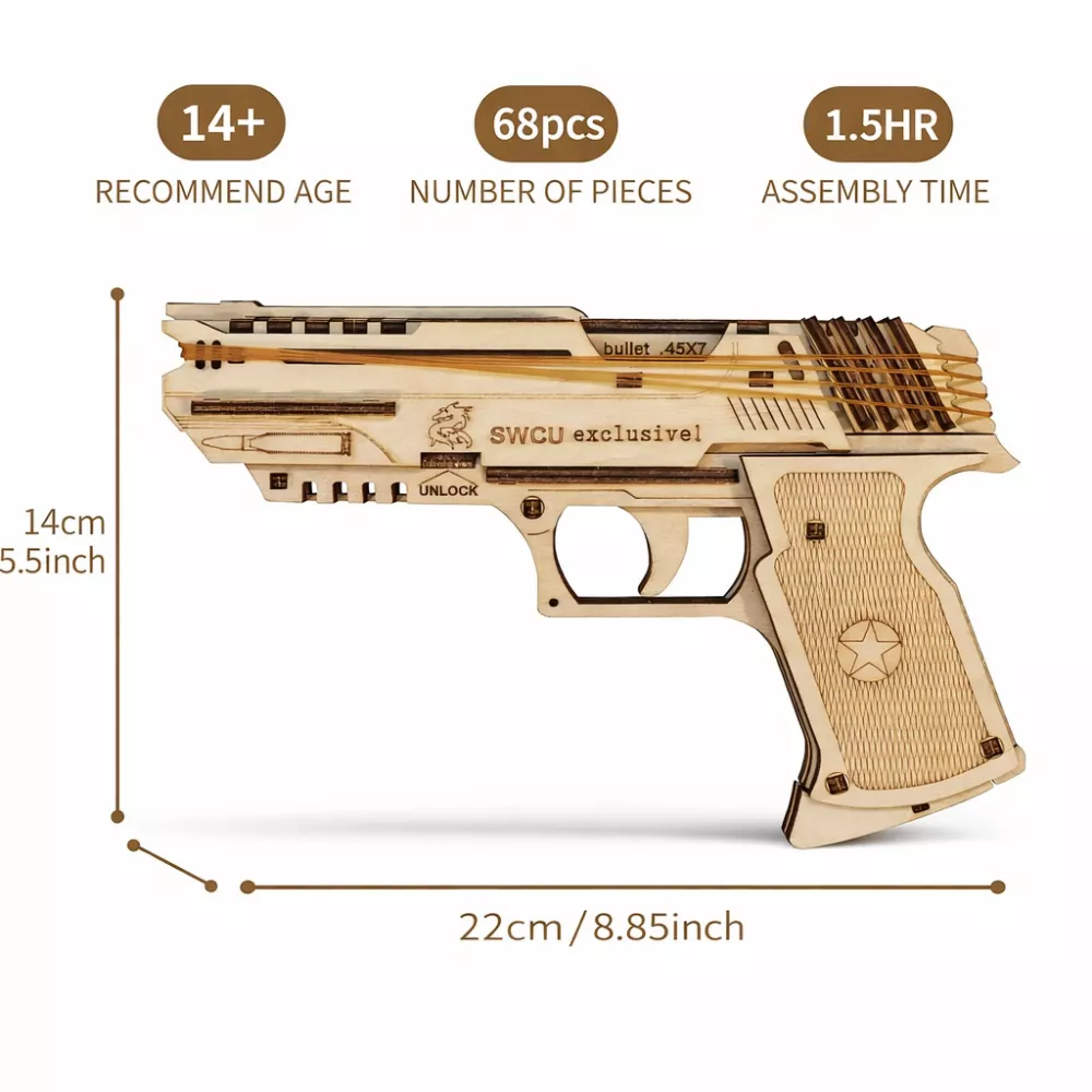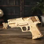 This wooden mechanical pistol model delivers the tactile satisfaction of real firearm mechanics—the slide that racks back and snaps forward, the trigger that pulls and resets—without any projectiles whatsoever. It’s a fidget toy for people who find spinners too simple and stress balls too squishy.