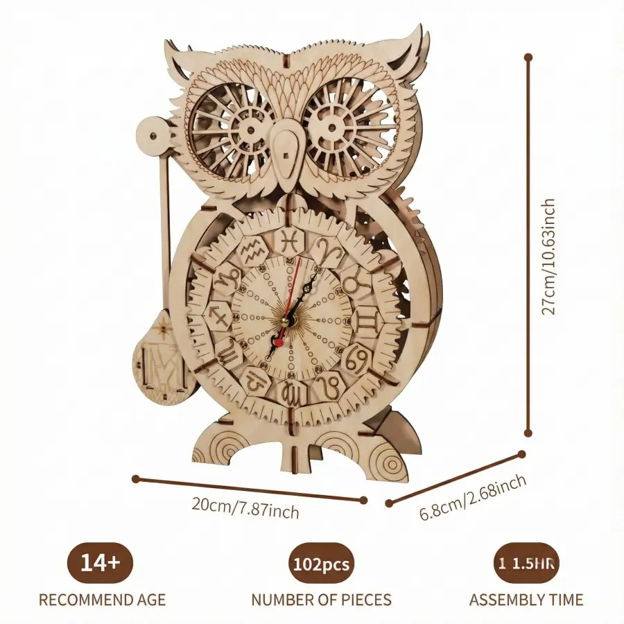 Discover the enchanting fusion of celestial wisdom and mechanical artistry with our 3D Wooden Mechanical Owl Clock Puzzle. Featuring zodiac constellation symbols instead of traditional numbers, this isn’t just a timepiece—it’s a cosmic companion that brings together astrology, engineering, and timeless craftsmanship.