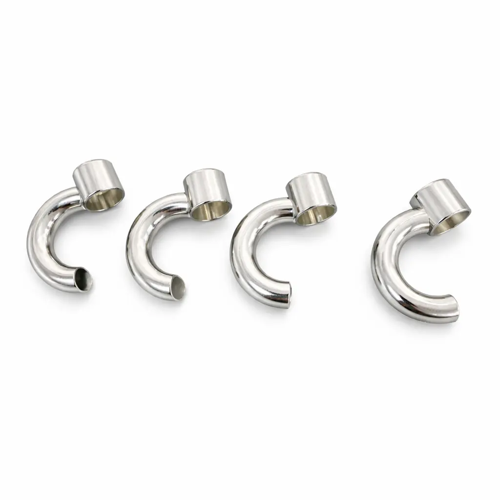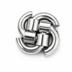 Four cast metal pieces, each shaped like a curved hook with a cylindrical sleeve at one end. The silver chrome finish is bright enough to catch your reflection if you hold it at the right angle. In the assembled state, the four hooks spiral around each other, forming a compact knot that appears seamless from the outside.