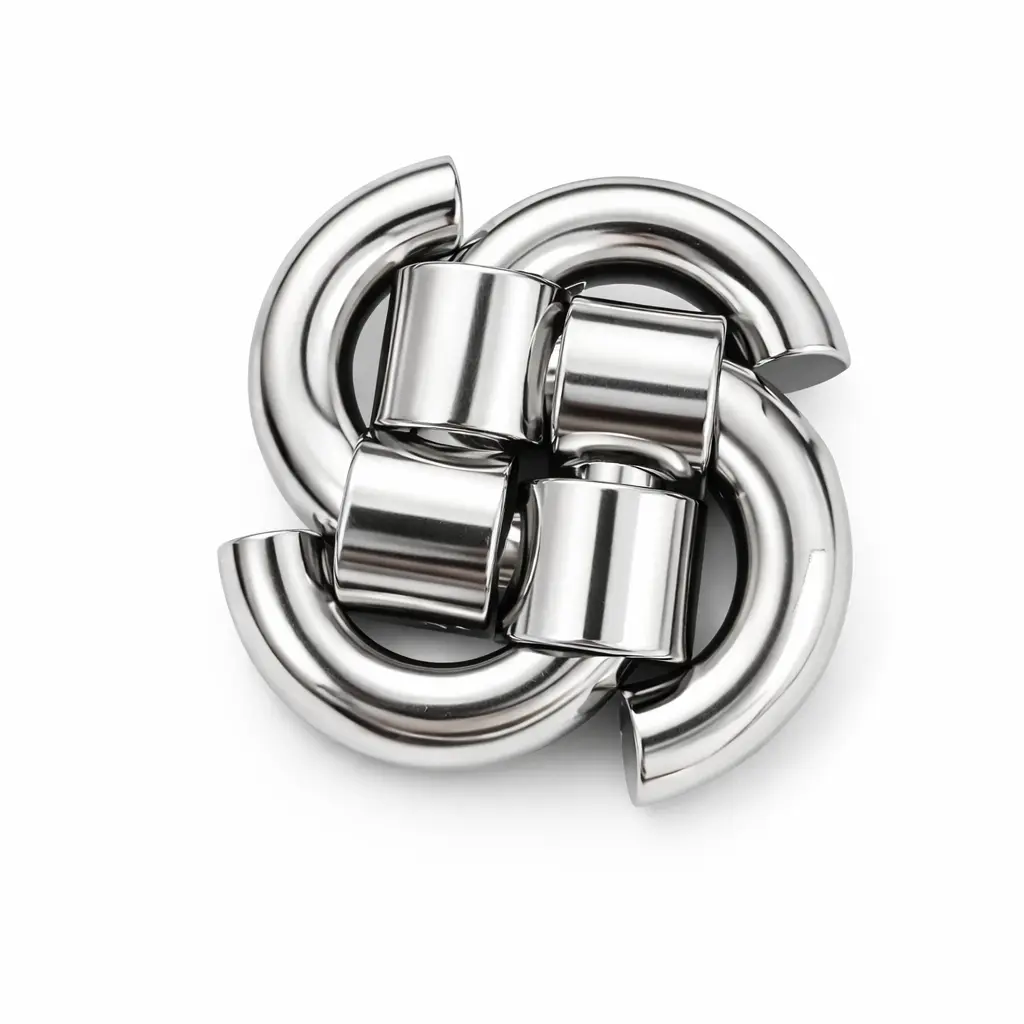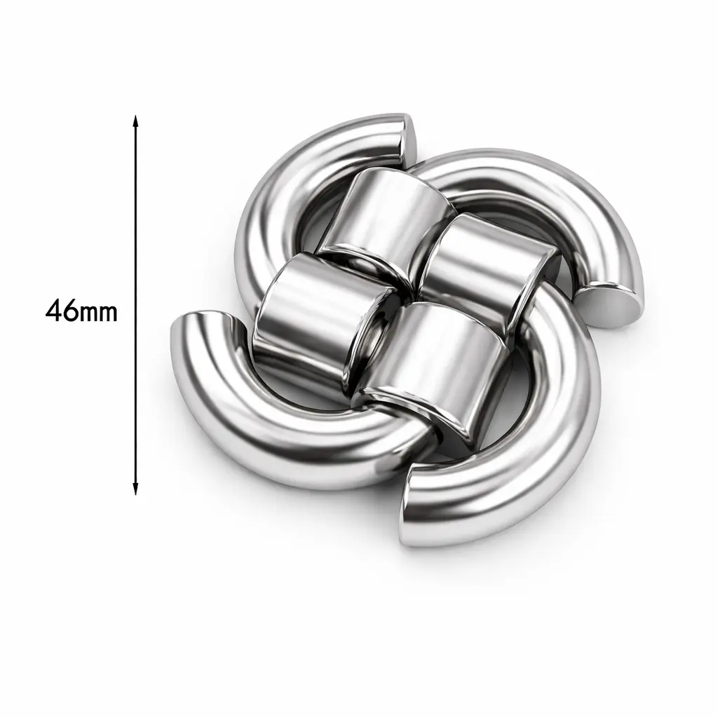 Give it forty-five seconds. The four curved arms will slide apart in your hands — almost casually, as if the puzzle wanted to open. You will set the four chrome pieces on the table, admire how they catch the light, and reach for reassembly.