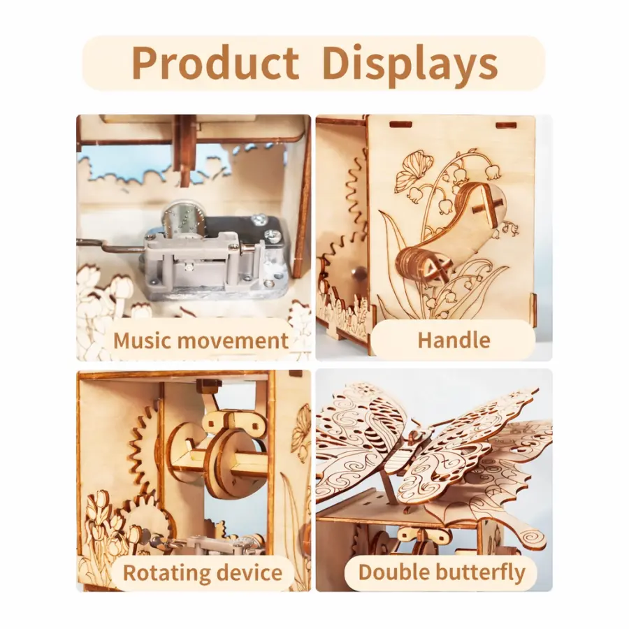 | Product Type | Wooden DIY mechanical music box model |