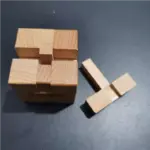 At first glance it’s a tidy wooden cube. Look closer and you’ll see a system of notches, grooves and projections that allow multiple bars to slide, lock, and unlock in sequence. This is classic mortise-and-tenon style joinery adapted into a puzzle: no nails, no glue — just precision cuts that make each piece unique. In modern catalogs these puzzles are grouped with burr and interlocking puzzles because of their similar assembly logic.