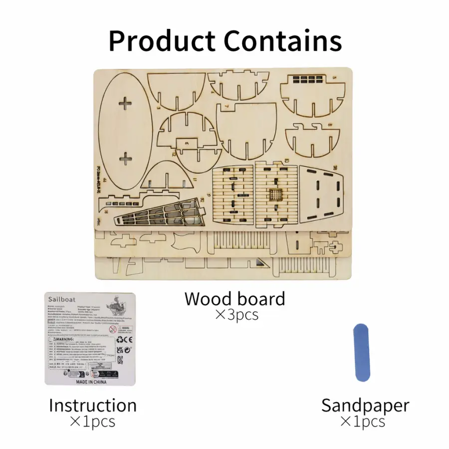 ✓ Package Contents: 3 wood board sheets, instruction manual, sandpaper