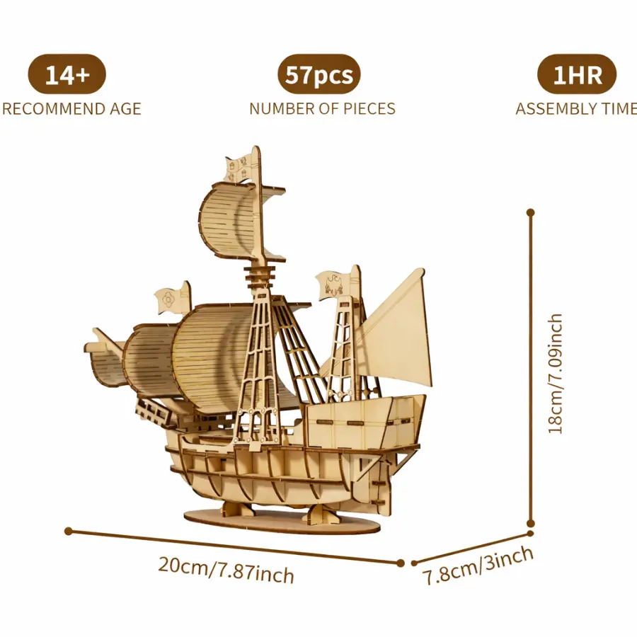 ✓ Display: Fully 3D structure with detailed sails and rigging